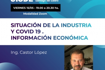 SITUACIÓN DE LA INDUSTRIA Y COVID 19 . INFORMACIÓN ECONÓMICAEste viernes 15/05/2020 de 19.00 a 20.30 hs, charla Zoom con el Ing. Castor López