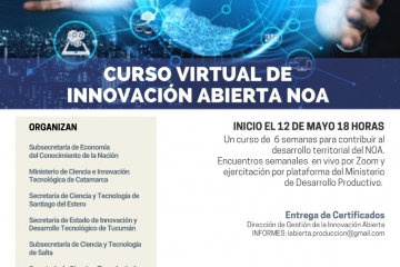 Curso virtual de Innovación Abierta NOAUn curso de 6 semanas para contribuir al desarrollo territorial de toda la región NOA.